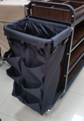 Предлагаем недорого купить мешок с карманами на тележку М9.1 из прочной, водонепроницаемой ткани. Функциональный аксессуар применяется клининговыми компаниями, а так же в гостиничном бизнесе. Обеспечивает комфортную уборку номеров и помещений