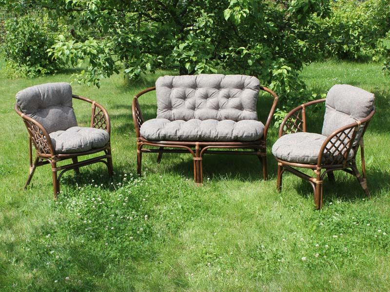 У нас вы можете приобрести подушки, предназначенные для комплекта мебели Багама. В комплекте находятся подушки, предназначенные для одного дивана и двух кресел, сидение и спинка разделены. Изготовлены они из высококачественных мебельных тканей, имеющих разные цвета и фактуры, вы можете выбрать ту фактуру, которая вам подойдёт. Благодаря завязкам подушки надёжно прикрепляются к мебели. В качестве наполнителя используется поролоновая крошка, подушка простегана при помощи пуговиц. Такая подушка подойдёт для стандартного комплекта мебели, изготовленного из натурального ротанга Багама.
