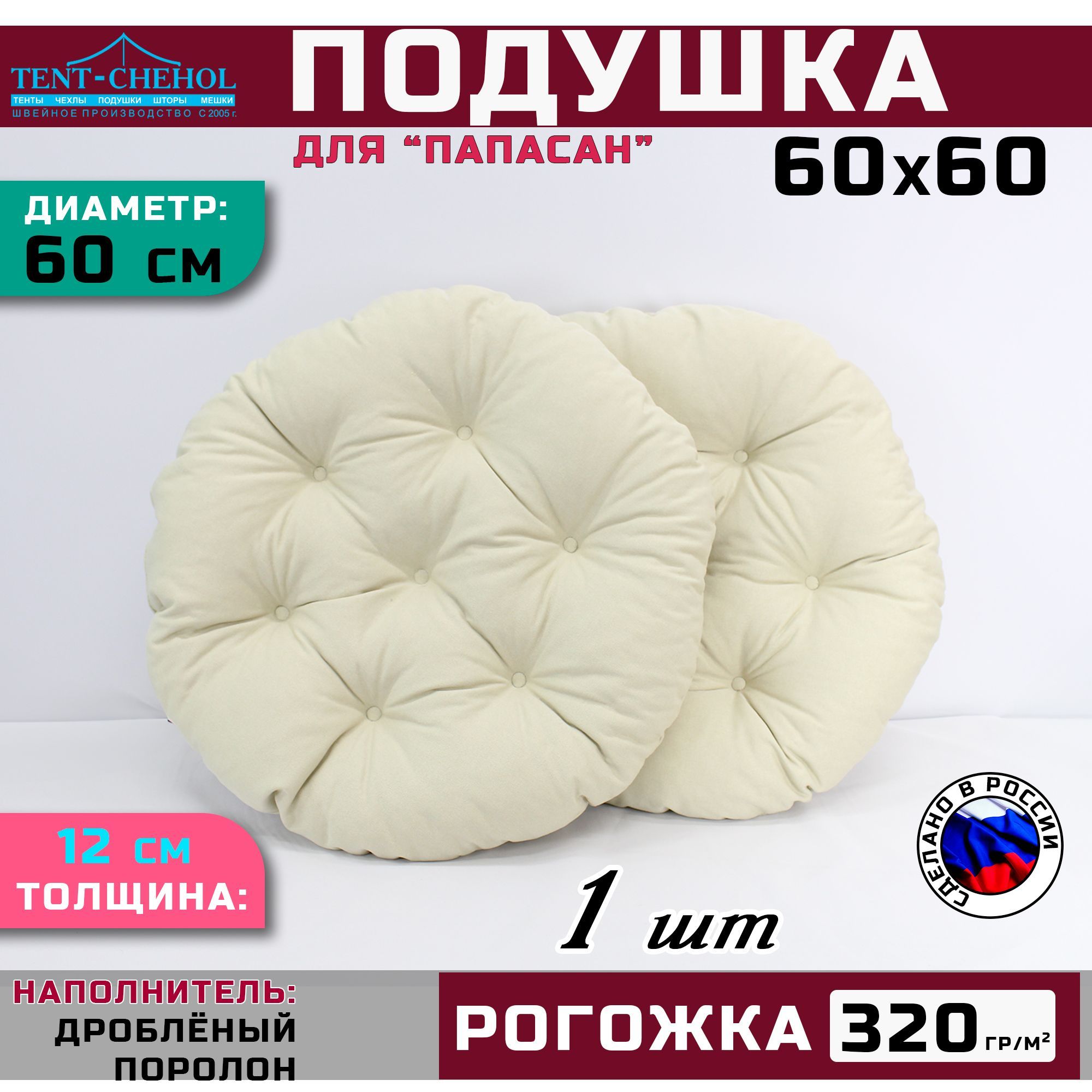 Краткое описание «Подушка для кресла и качелей 60 см, светло-бежевая (рогожка)»