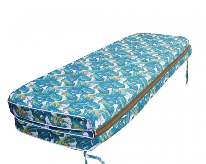 Данный матрас предназначен для садовой качели. Такие матрасы изготавливаются из универсальных тканей, изготовленных в Испании. Благодаря тому, что в такой ткани огромный процент натуральных волокон, она замечательно пропускает воздух, а также является максимально приятной на ощупь. Эта ткань устойчива к появлению пятен, она с лёгкостью разглаживается. Наполнитель изготовлен из пенополиуретана вторичного вспенивания. Спинка, а также сиденье матраса выполнены на молнии, поэтому наполнитель с лёгкостью можно вынуть, а чехол легко можно постирать. Для того, чтобы матрас надёжно держался на качели, на нём есть специальные завязки по бокам.