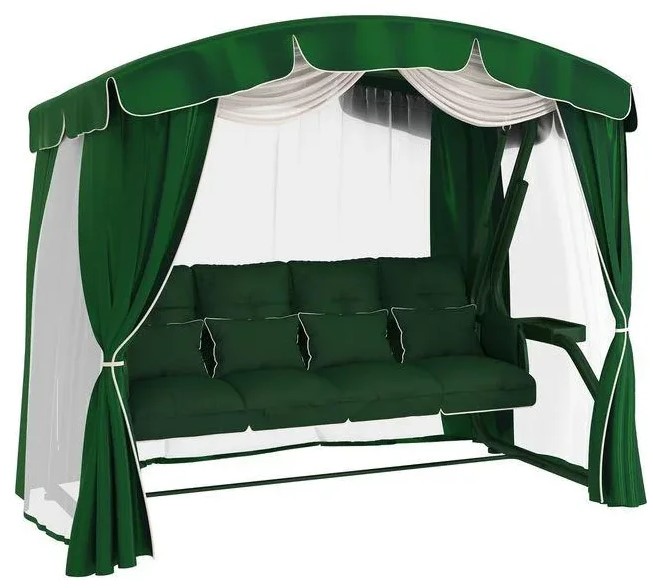 Наслаждайтесь комфортом и релаксацией на садовых качелях под тентом из нашего ассортимента. Тент изготовлен из качественной ткани, которая не выгорает на солнце и не промокает под дождем. Тент имеет стильный дизайн и гармонично сочетается с любыми качелями. Тент легко прикрепляется к качелям с помощью надежных креплений и может быть отрегулирован по высоте в зависимости от ваших предпочтений. Если же данный тент вам не подошел, вы всегда можете заказать у нас индивидуальное изготовление по вашим параметрам.
