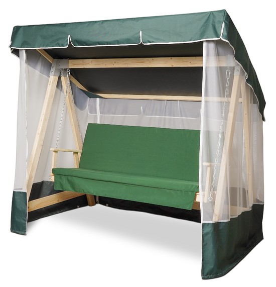 Отдых на деревянных качелях является очень комфортным, это отличное место для того, чтобы расслабиться после тяжелого рабочего дня и отдохнуть. Взрослые могут посидеть в этих качелях вечерами и выпить кофе, почитать книгу, или просто отдохнуть. Дети иногда проводят на таких качелях целый день, на них они могут играть и кататься. Однако, отдых очень сильно могут испортить разнообразные внешние факторы, например палящее солнце, осадки, либо же надоедливые насекомые, которые больно кусаются и мешают отдыху. Однако, выход все же есть, вам просто нужно приобрести специальный тент, предназначенный для садовых качелей. Кроме того, некоторые модели тентов идут в комплекте.